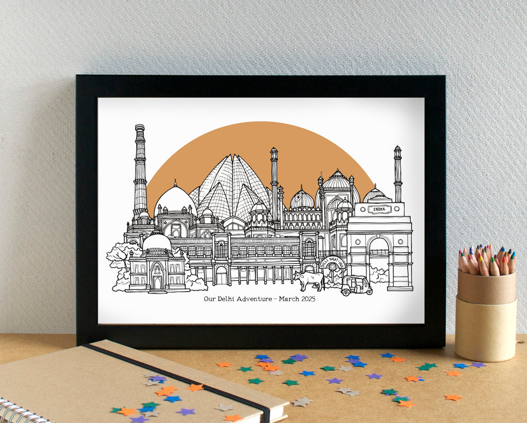 Delhi Skyline Landmarks Travel Art Print - can be personalised - unframed