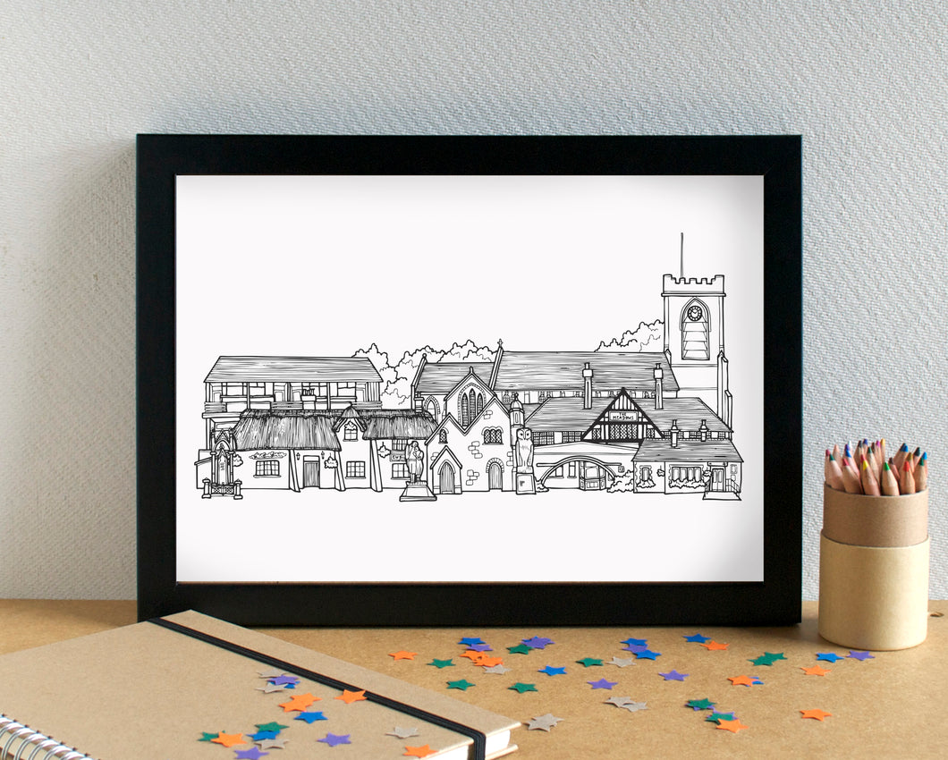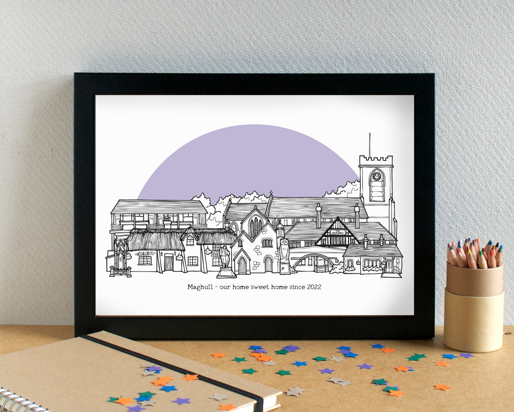 Maghull Skyline Landmarks Art Print - can be personalised - unframed