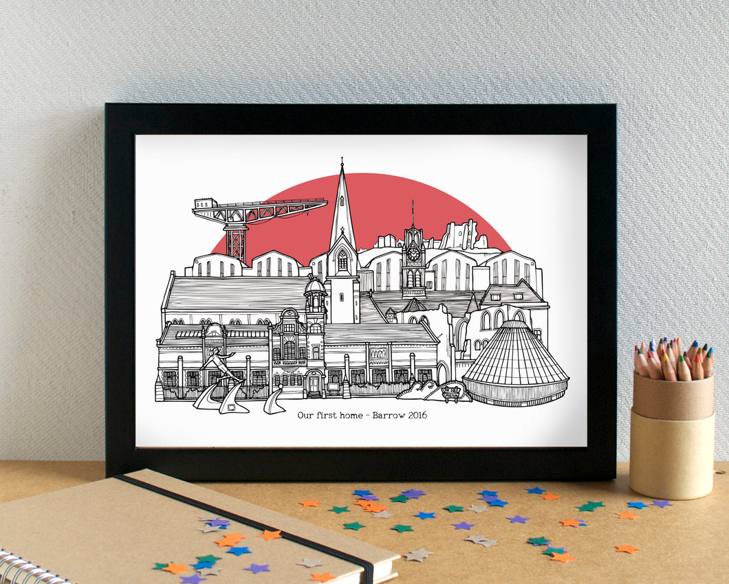 Barrow-in-Furness Skyline Landmarks Art Print - can be personalised